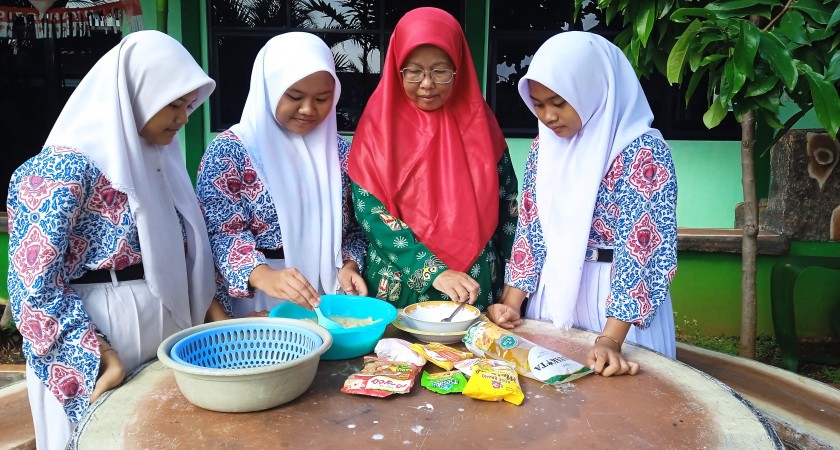 Dalam inovasi ini, Taryumi bersama peserta didik mengolah pelepah pohon pisang menjadi keripik. Proses pengolahan dilakukan melalui tahapan pemilihan pelepah yang baik, pembersihan, perendaman, hingga penggorengan. Kegiatan tersebut tidak hanya mengajarkan keterampilan praktis, tetapi juga memberikan pemahaman tentang cara mengolah bahan sederhana menjadi produk yang bernilai.